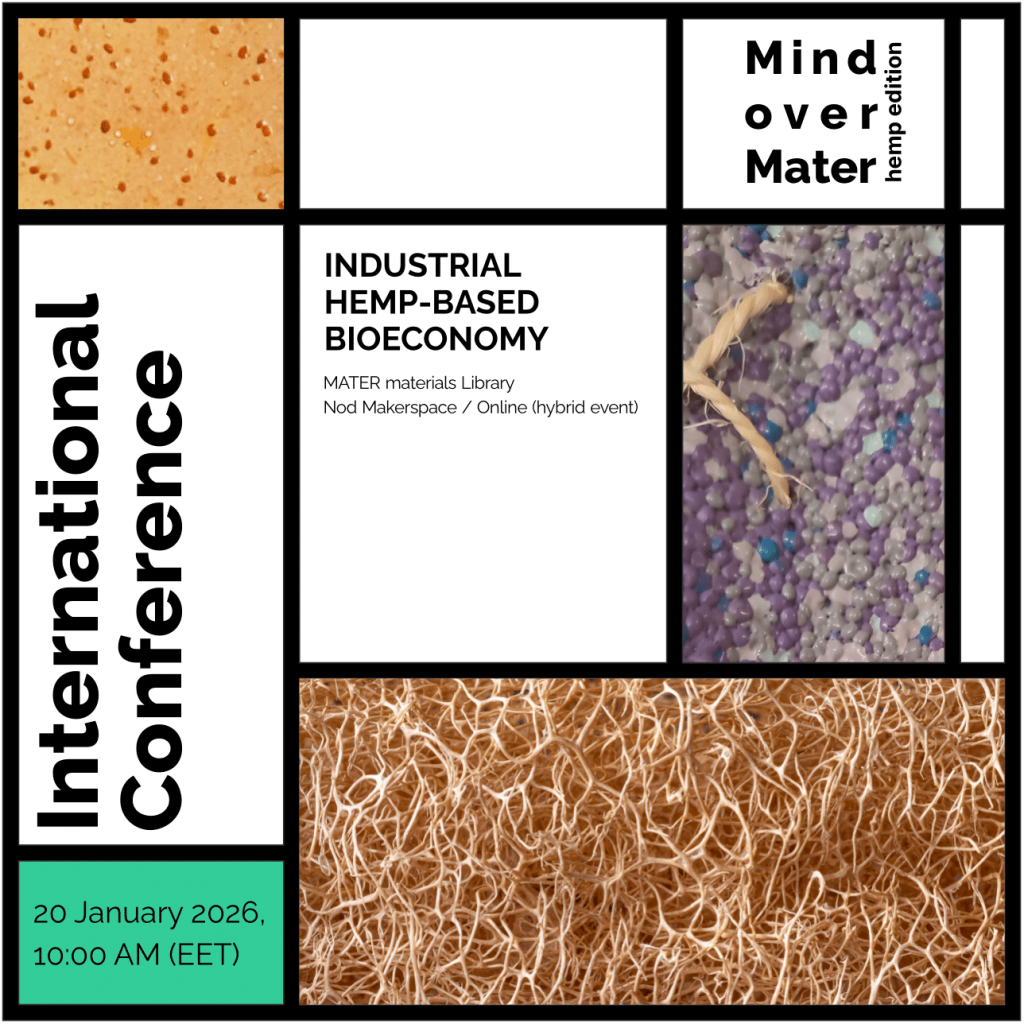 Pe 20 ianuarie 2026, la Biblioteca de materiale MATER – Nod Makerspace din București, a avut loc conferința internațională Mind Over Mater: Bioeconomia bazată pe cânepă industrială, un eveniment care a adus la aceeași masă cercetători, designeri, arhitecți și reprezentanți ai politicilor publice, din România și din Europa.